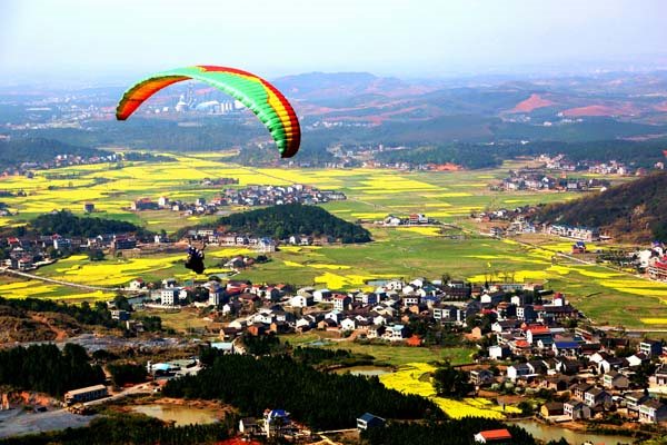 花橋山清水秀,風景迷人。衡南最大最美的人造水庫龍溪湖便坐落於此,像一條藍色的巨龍穿梭於崇山峻嶺之中,形成一片高峽平湖的壯麗風光。這裏群山環拱、湖塘密布,沃野青青、小橋流水,洞奇水幽、秀峰疊嶂,龍橋、龍洞、龍溪、龍皮等一個個與龍相關的優美傳說流傳至今。600年曆史的古民居村落蔣家大屋,庭院深深,古巷悠長,青石黛瓦,曲水流觴,綿延九街八百間房,堪稱民間故宮,畫裏花橋。湖南高山飛行滑翔基地“花橋現代航空農莊”,座落在花橋石丘村天光峰摩天頂上,是衡陽唯一體驗飛翔的地方,帶你空中欣賞原始山林美景,感受超越現實的無比刺激。