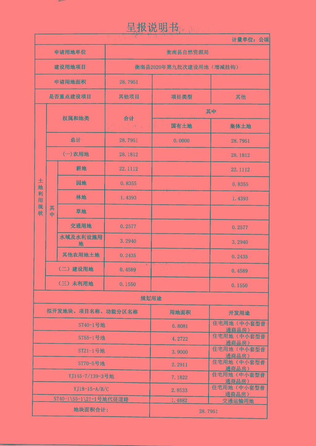 衡南縣2020年第九批次建設用地(增減掛鉤)