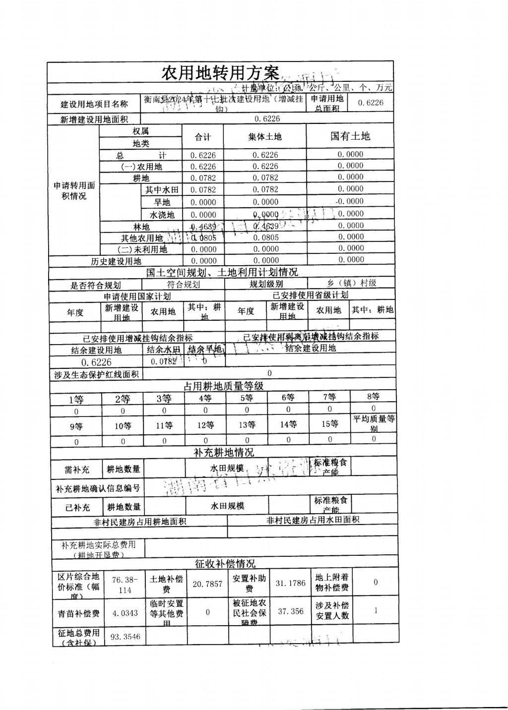 衡南縣2024年第十七批次建設用地(增減掛鉤)