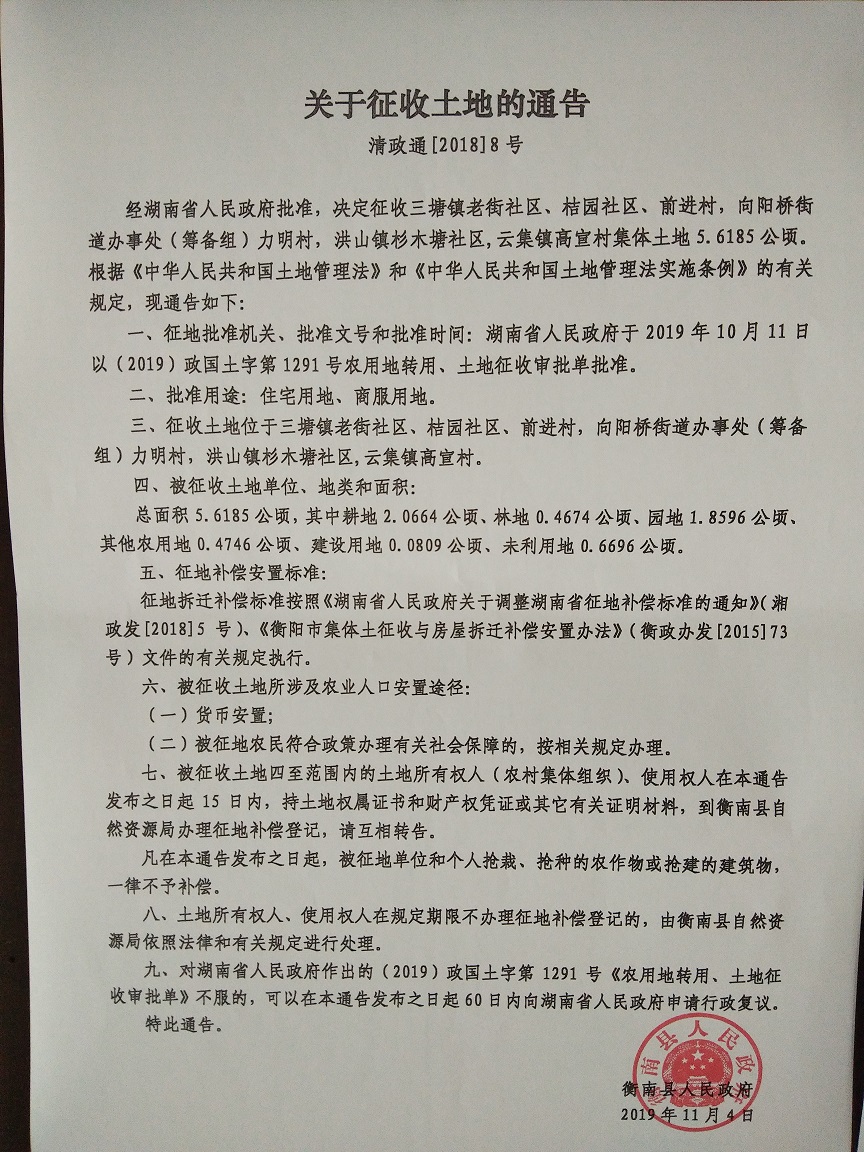 當前頁麵: 首頁  > 衡南縣自然資源局 > 業務工作 > 土地管理 > 征地信息 > 征地公告