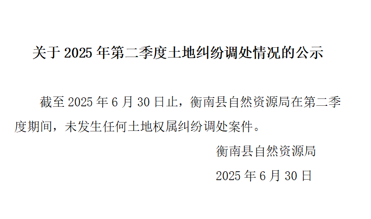 關於2025年第二季度土地糾紛調處情況的公示