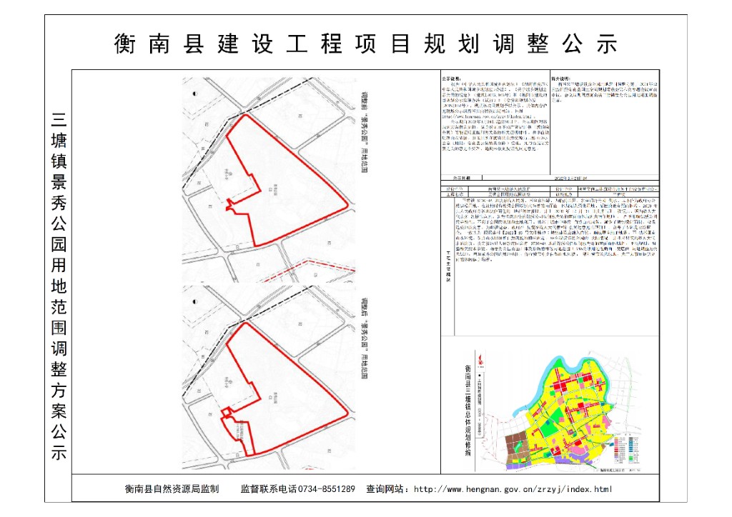 衡南縣建設工程項目規劃調整公示(三塘鎮景秀公園用地範圍調整方案)
