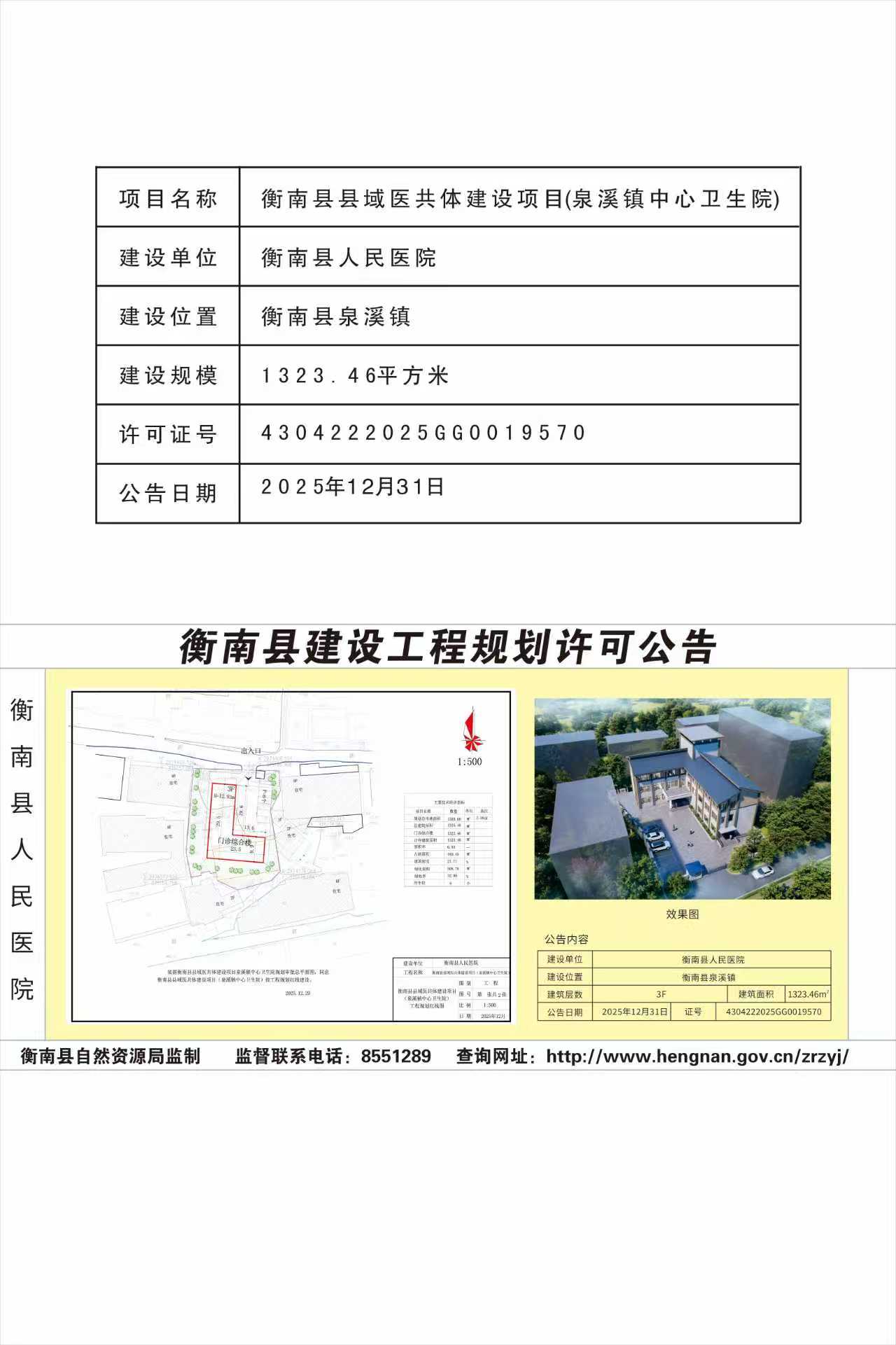 衡南縣建設工程規劃許可公告(衡南縣縣域醫共體建設項目【泉溪鎮中心衛生院】)