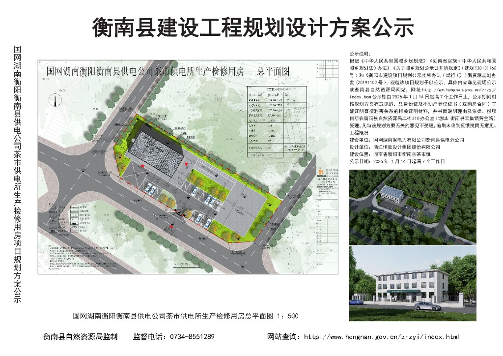 衡南縣建設工程規劃設計方案公示(國網湖南衡南縣供電公司茶市供電所生產檢修用房項目)