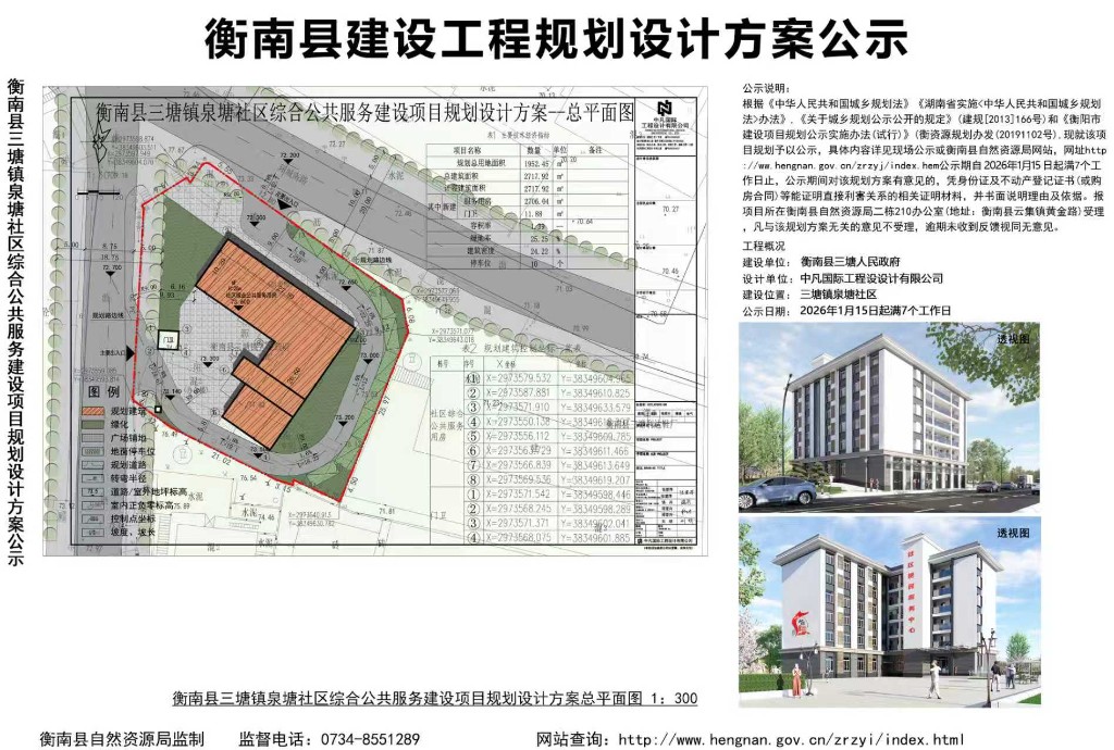 衡南縣建設工程規劃設計方案公示(衡南縣三塘鎮泉塘社區綜合公共服務建設項目)