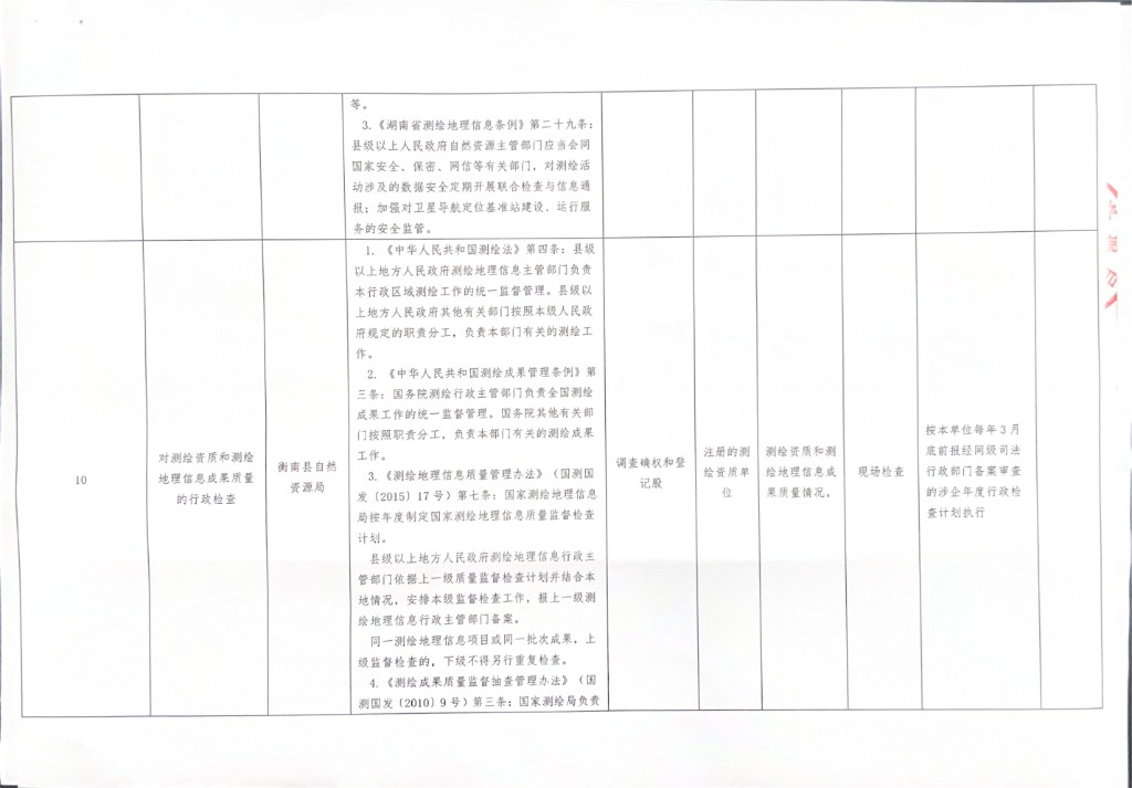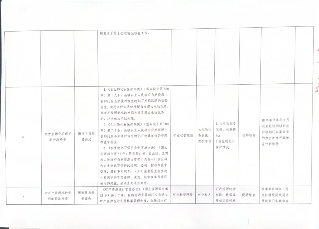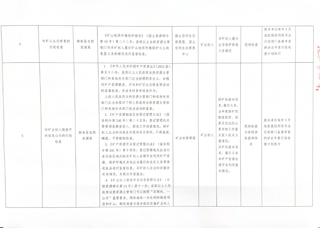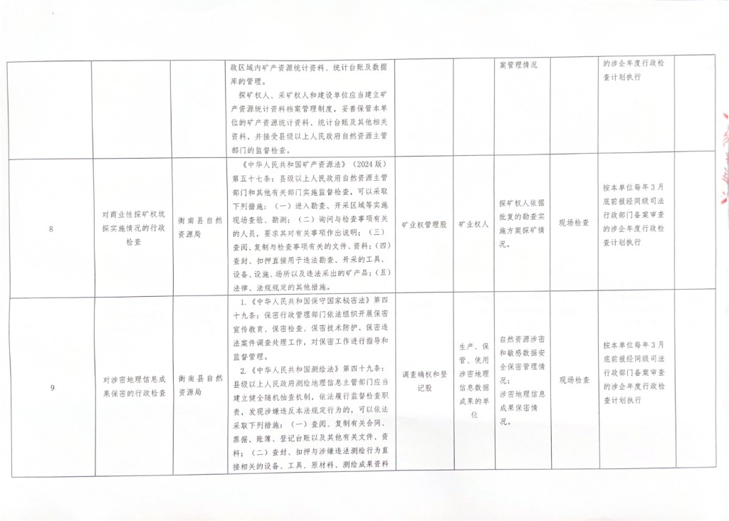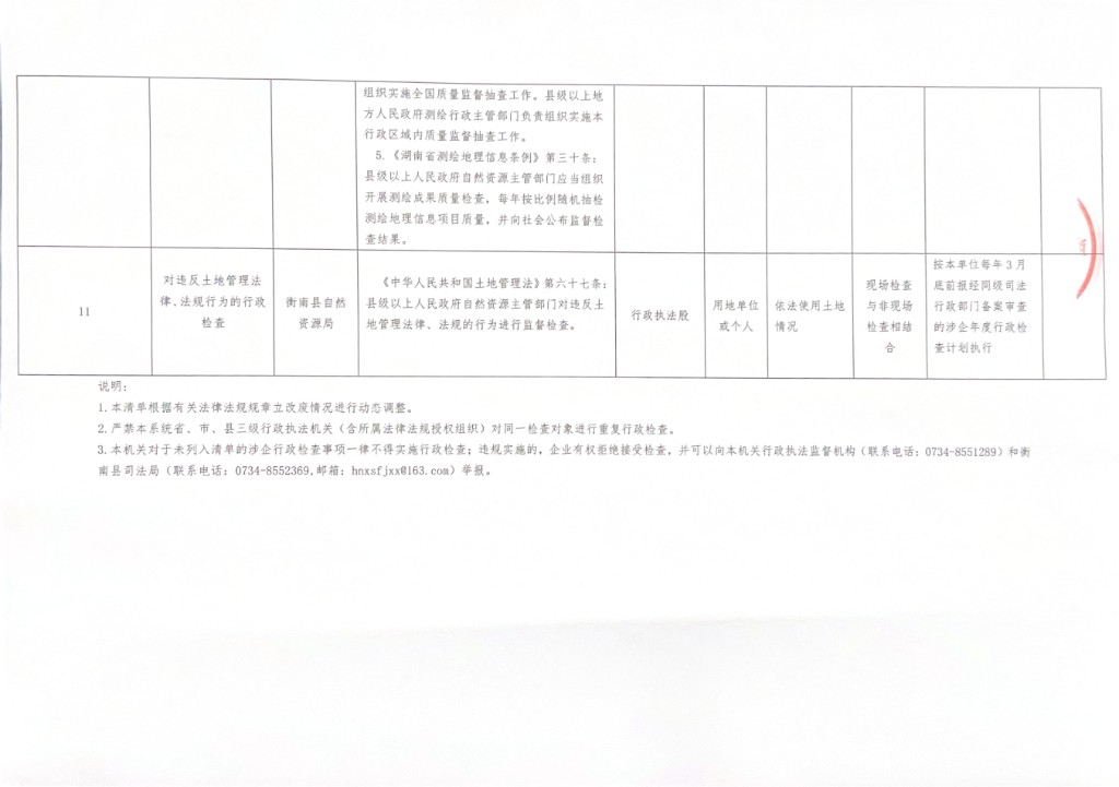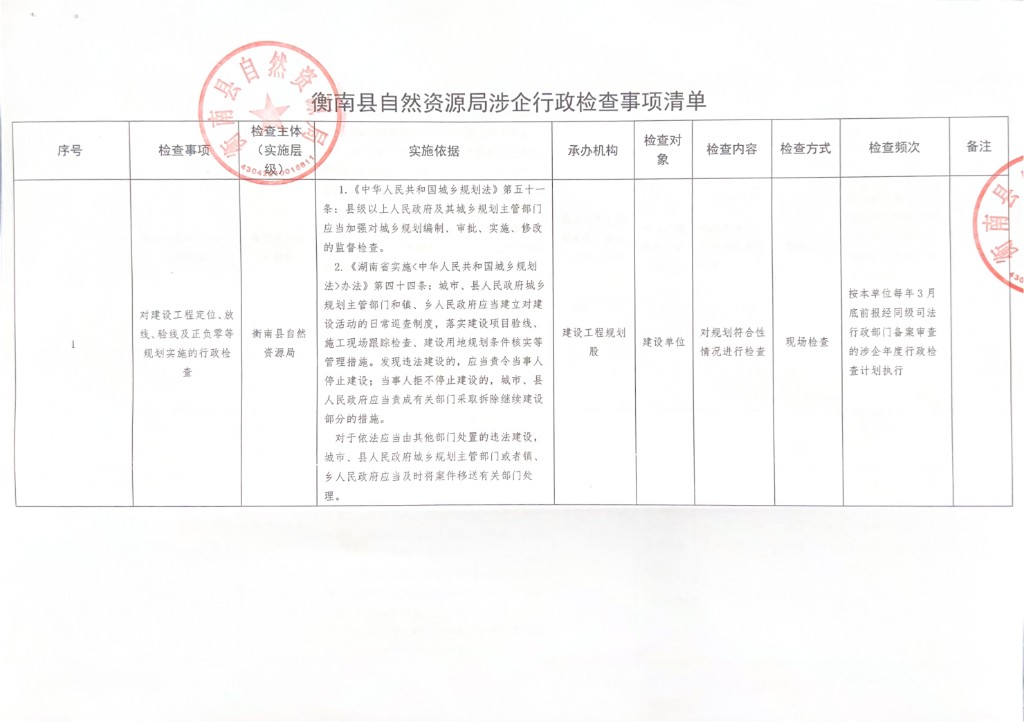 衡南縣自然資源局涉企行政檢查事項清單