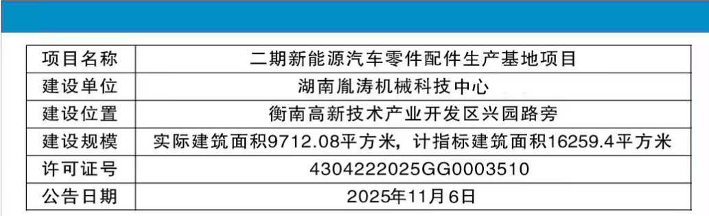 建設工程規劃許可證公示(二期新能源汽車零件配件生產基地項目)