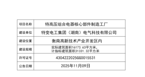 建設工程規劃許可證公示(特高壓組合電器核心部件製造工廠)