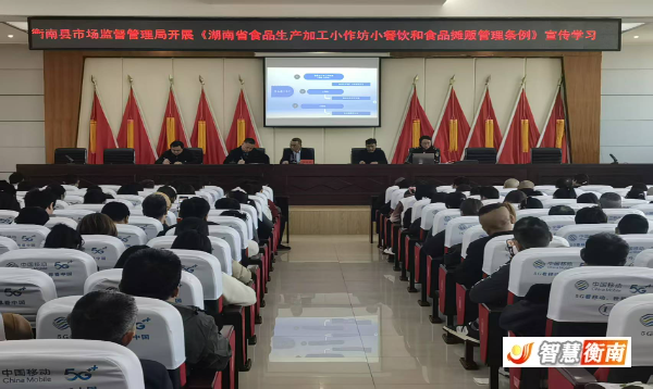 3月20日,衡南縣市場監管局組織召開《湖南省食品生產加工小作坊小餐飲和食品攤販管理條例》宣傳學習會議,旨在通過係統化指導,全麵提升經營主體的規範化水平,強化食品安全主體責任落實,切實築牢食安防線。全縣300餘名"三小"從業人員齊聚一堂共同學習新規。