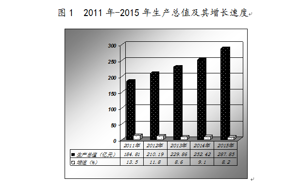 初步核算全年完成生產總值(GDP)287.85億元,增長8.2%。其中第一產業實現增加值65.18億元,增長3.7%;第二產業實現增加值127.52億元,增長6.4%,第三產業實現增加值95.15億元,增長15%。