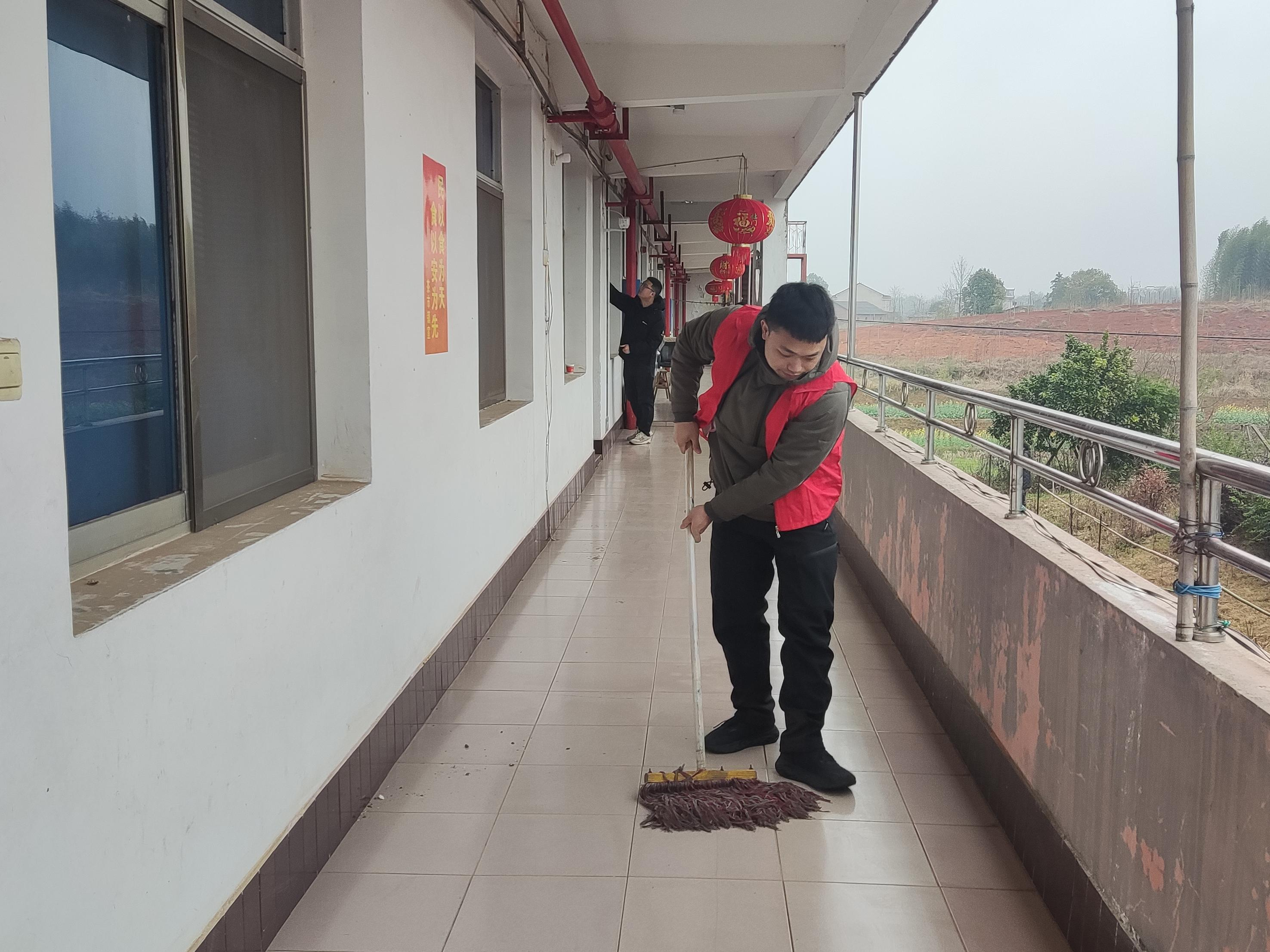 一抹抹"誌願紅"穿梭在院落各處,黨員幹部們紛紛對房間地板、門窗玻璃、走廊扶手等展開"繡花式"清潔。勞動間隙,大家與老人圍坐談心,一邊科普著"防電詐""安全用電"等相關知識,一邊記錄著老人們的微心願:"想重新配個老花鏡""看場花鼓戲"......這些細碎的需求,將成為下次服務的行動指南。