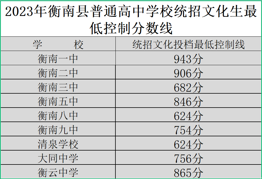 快訊!2023年衡南縣普通高中秋季高一新生錄取分數線公布
