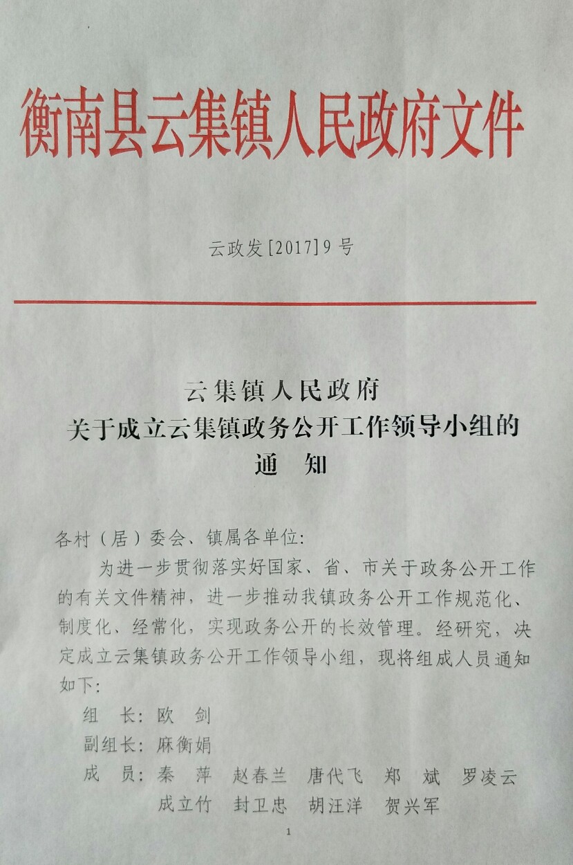 衡南縣雲集鎮2017年政府信息公開年度報告