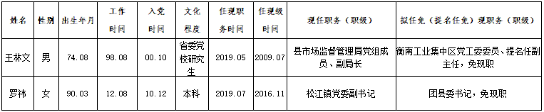 中共衡南縣委關於新冠肺炎疫情防控一線表現突出擬提拔和進一步使用幹部任前公示
