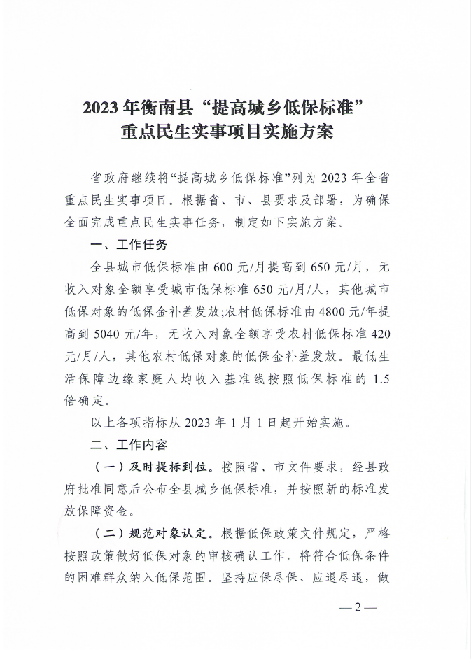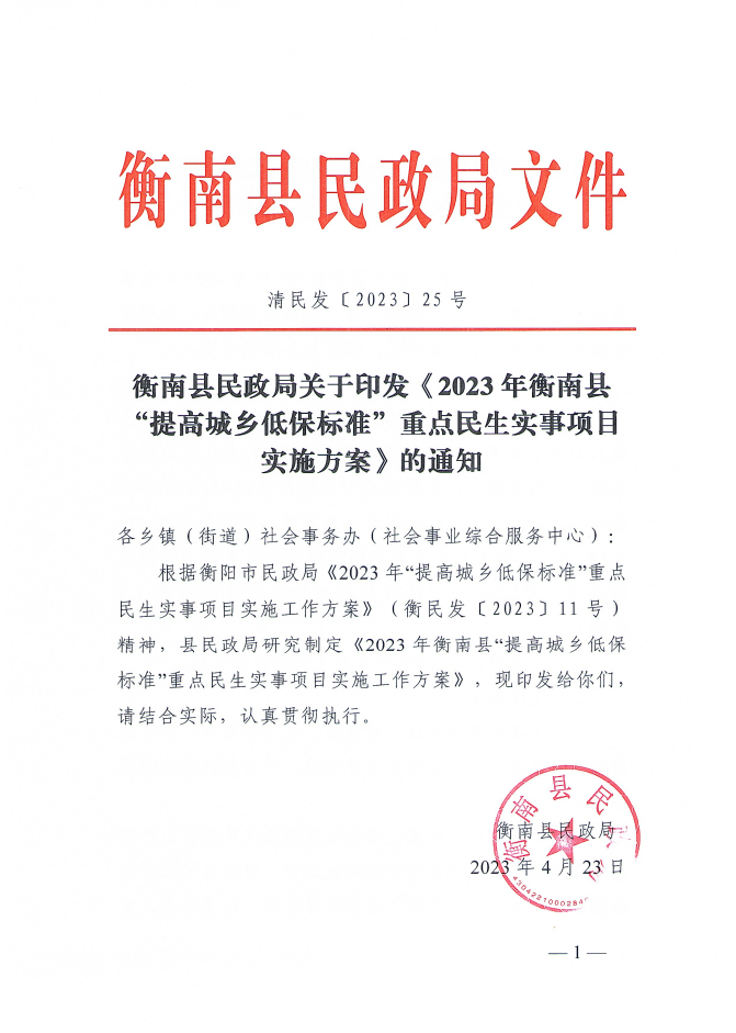 衡南縣民政局關於印發《2023年衡南縣“提高城鄉低保標準”重點民生實事項目實施方案》的通知