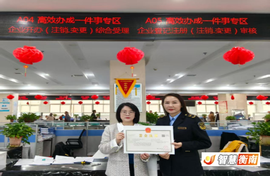 當天,麵對唐女士異地申報係統的操作障礙,窗口人員通過微信建立"一對一"服務通道,以視頻指導、分步教學方式協助填報材料,並利用非工作時間實時跟進解答疑問。從材料上傳到審核提交,全程實現"零接觸"辦理,最終高效完成企業開辦手續。唐女士在領取電子營業執照後感慨:"工作人員不分晝夜的細致服務,讓我感受到衡南的誠意與效率。"