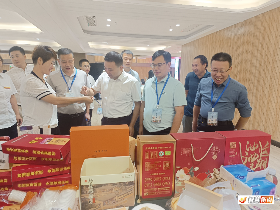 衡南遴選了湖南省大三湘茶油股份有限公司、綠色田園(衡陽)農業發展有限公司、湖南省廣林農業科技有限公司、衡陽市漂木文化有限公司等4家公司的農特產品參展。展台產品豐富,種類多樣,品質上乘又兼具地域特色,品鑒試吃的人員絡繹不絕,好評不斷。以"清泉農夫"品牌冠名的衡南糧、油、豬、棉等"百十億"農業主導產業規模顯著,品質茶油、衡南土枇杷、玫瑰香豬、詩魔燒餅、寶蓋有機茶等特色產業興旺。近三年來,"清泉農夫"授權產品獲中部農博會金獎10個,獲"全省十大名牌產品"和"味道湖南"名優食材銀獎稱號,"清泉農夫"授權的寶蓋有機茶首批出口俄羅斯、波蘭、意大利等國家。