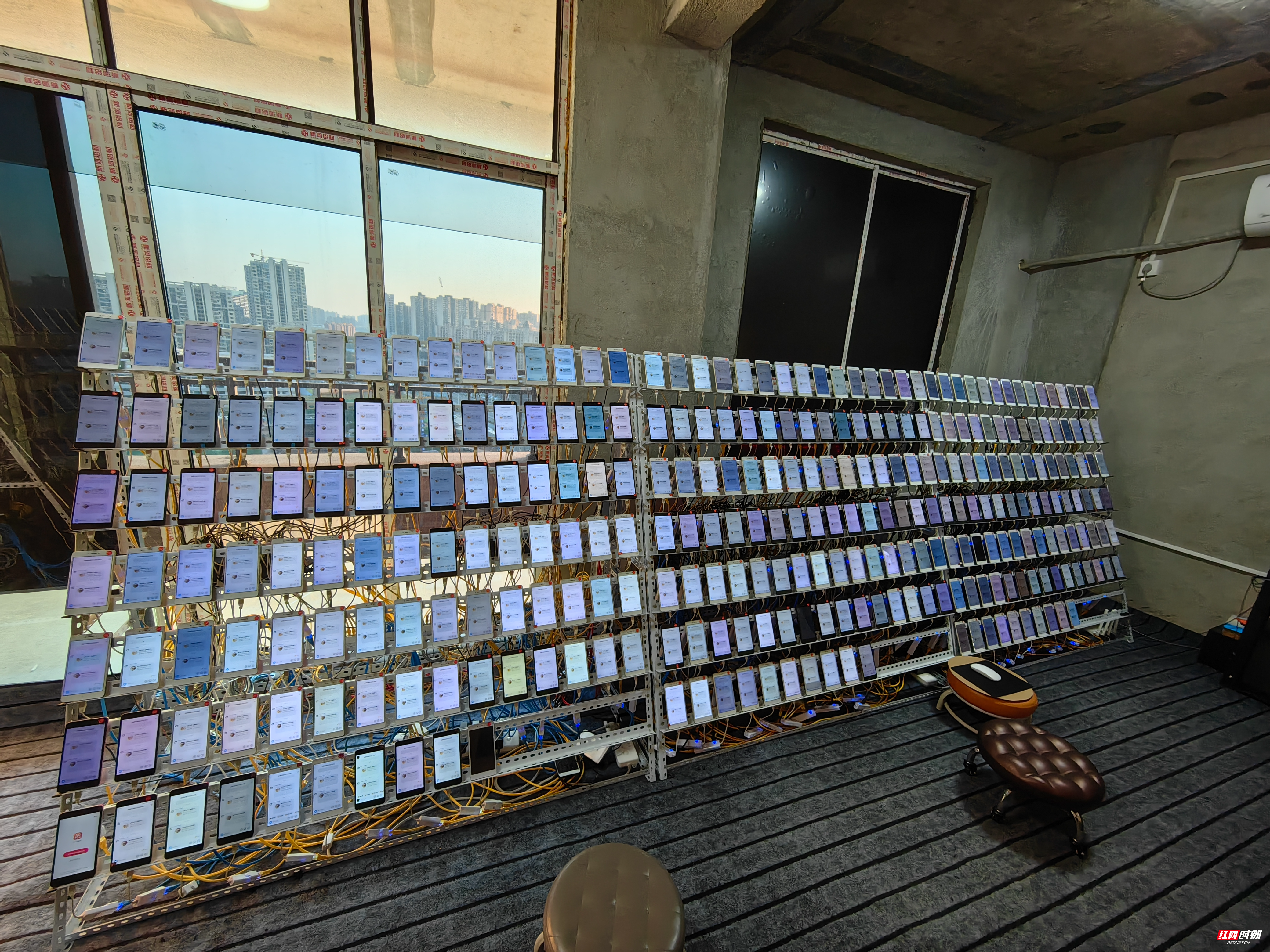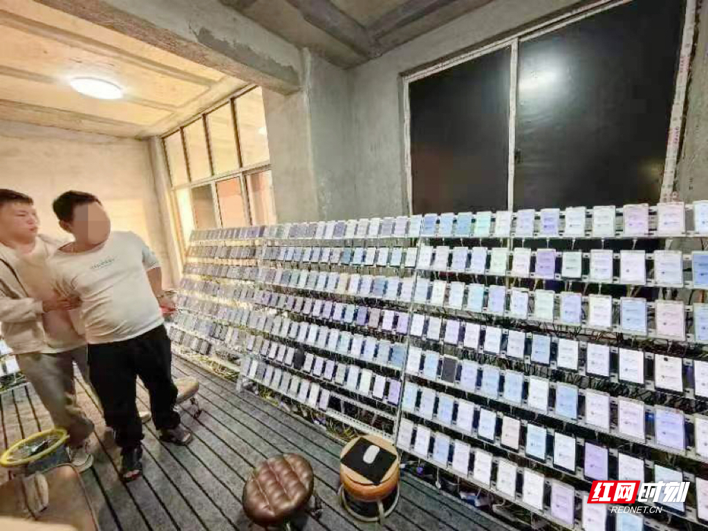 10月16日,收網時機成熟。在市公安局網技支隊大力支持下,衡南縣公安局組織網安大隊、車江派出所、近尾洲派出所開展抓捕行動。辦案民警雷霆出擊直搗現場,成功搗毀窩點2個,當場扣押作案手機900餘台、電腦2台,關停水軍賬號900餘個,抓獲涉案嫌疑人3人。